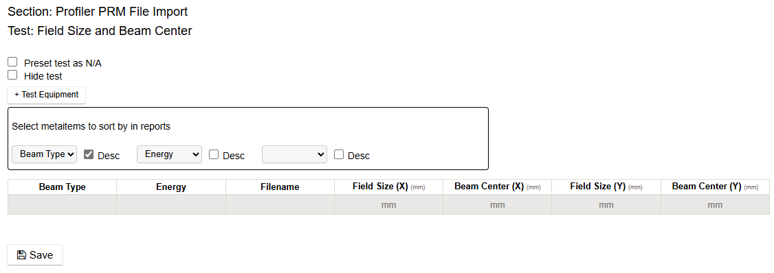 Select the meta-items to be sorted. The fields are sorted from left to right so in the example above results would first be sorted by Beam Type and then by Energy in the report. Note that the results are not sorted in the new QA preview.