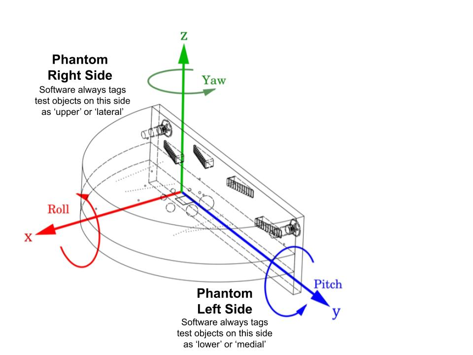 Figure 1.1: Standard central phantom configuration. Right and Left Side labels are used to indicate which side of the phantom that the Smári analysis is referring to when it tags test objects as ‘upper’ or ‘lower’ and ‘lateral’ or ‘medial’.