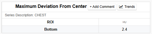 The means for the top, right, bottom, and left ROI is compared to the mean for the center ROI and the difference is reported along with the standard deviation (noise) for each ROI.