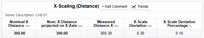 - X-Scale Deviation Percentage - the difference between nominal and measured as a percentage of the nominal.